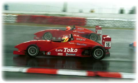 Ainda em 2001, um teste na Fórmula Renault Europeia e mais uma vez o cara chegou lá e simplesmente triturou os adversários, com direito a quebra de recorde da pista. A cada entrada e saÁda dos boxes com informações precisas os engenheiros não acreditavam no que viam, mas viam. Esse teste renderia boas histórias, mas os mesmos Deuses que sempre estiveram com ele, não quiseram que ele chegasse mais longe…pois o contrato para chegar Á Fórmula 1 estava feito, mas jamais deve-se passar por cima dos seus princÁpios, e isso nós não aceitamos e deixamos rolar.