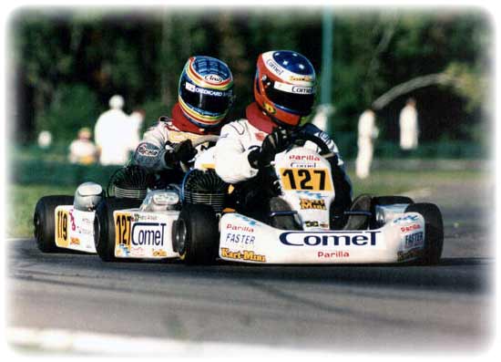 Uma rápida passagem pela Bélgica, onde ele disputou o Campeonato Mundial de Kart na Categoria Fórmula A. Começou na tenda ao lado da barraca oficial da equipe, mas logo após o primeiro treino a equipe o convocou para fazer parte da equipe oficial, e tinha como companheiro de equipe um cara chamado Fernando Alonso, kkkkk já ouviram falar dele??? Alonso corria na Super A. Como de costume, ele era muito, muito rápido…mas ali faltou um pouco de sorte, ele se envolveu em alguns incidentes que o fizeram largar muito atrás nas corridas.
