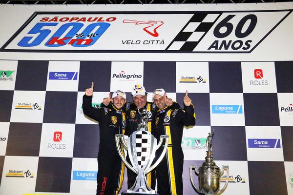 Marcel Visconde, Ricardo MaurÁcio e Max Wilson venceram neste sábado (23)Â a 33ª edição dos 500 Km de São Paulo – Troféu Stuttgart 20 Anos. O trio, que competiu com um Porsche 911 GT3 R, assumiu a liderança da corrida ainda na segunda das 146 voltas de prova no Velo CittÁ , e exceto na primeira janela de paradas nos boxes, jamais deixaram a primeira colocação, garantindo a vitória em uma tarde de muito sol e calor em Mogi Guaçu (SP).
