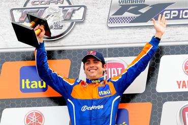 Depois de largar na pole da quinta etapa da Copa Fiat, disputada na manhã deste domingo no Autódromo Internacional de Curitiba-Pinhais, o carioca Cacá Bueno só foi rever os adversários no pódio na comemoração de sua terceira vitória na temporada. Ao longo das 18 voltas, o bicampeão correu tranquilo, sempre com uma margem segura de cerca de dois segundos, e as emoções ficaram por conta da briga pelo segundo lugar. Depois de andar em terceiro na maior parte da prova, Christian Fittipaldi superou André Bragantini e impediu que as posições na chegada reproduzissem exatamente as da corrida da véspera, válida pela segunda etapa e adiada da abertura do calendário em Londrina. Apesar da ótima apresentação e pressionar os carros que seguiam Á frente, o catarinense Leonardo NienkÁ¶tter acabou em 4º.