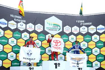 A Copa Petrobras de Marcas realizou na manhã deste domingo (5) em Santa Cruz do Sul (RS) o complemento da terceira etapa da temporada 2016. E se no sábado foi o dia da Renault comemorar no alto do pódio com Guilherme Salas, o domingo foi do Chevrolet Cruze de NonÁ´ Figueiredo, que tomou a ponta ainda na primeira volta ao ultrapassar o Fluence de Willian Starostik e pelas 18 voltas da prova teve de suportar a pressão de Gabriel Casagrande.