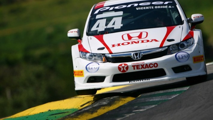 A temporada de 2013 da Copa Petrobras de Marcas não poderia começar melhor para Vicente Orige. O piloto levou seu Honda Civic Á pole position da primeira etapa, marcada para este domingo Á s 8h50 no Autódromo de Interlagos. Ele fez 1min49s616, média de 141,68 km/h e, na primeira fila, terá a companhia de Allam Khodair (Chevrolet Cruze), o segundo no grid com 1min49s806. A segunda prova do final de semana está marcada para domingo Á s 11h50.
