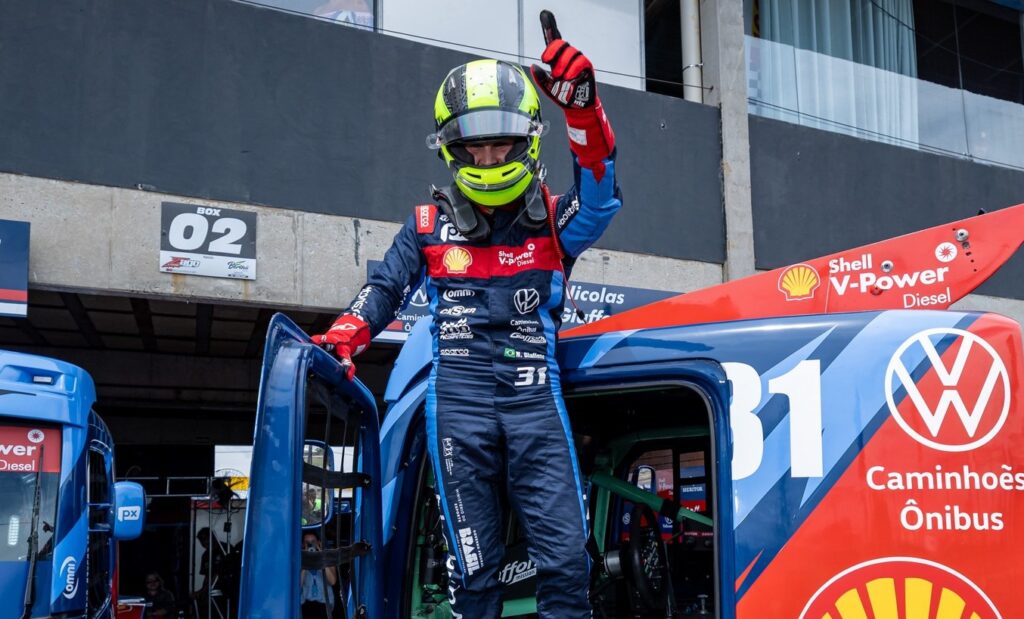 A primeira pole position da temporada 2026 da Copa Truck Be8 BeVant na Super Truck Elite ficou com Nic Giaffone. Com apenas 21 anos, o paulista consolidou a forte performance exibida em todos os treinos livres em Campo Grande (MS) e repetiu o feito conquistado na abertura do calendário do ano passado na ‘Cidade Morena’ para garantir novamente o primeiro lugar no grid de largada no Autódromo Internacional Orlando Moura. Com o Volkswagen Meteor #31, Nic liderou a trinca da marca alemã e da R9 Competições, que ainda colocaram Rafa Lopes e Ricardo Alvarez no top-3 da sessão classificatória realizada neste sábado (7) de forte calor.