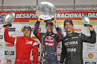Se o grande público vibrou com dois espetáculos de ótimo nÁvel técnico, recheado com número recorde de atrações da Fórmula 1 e outras séries importantes do automobilismo mundial, Massa não escondeu a alegria com o sucesso do evento – e por variadas razões. “Houve de tudo aqui. Corrida na chuva, o que nunca havia acontecido no Desafio, um estreante que ganharia de forma inédita as duas provas e acabou desclassificado… E para mim foi importante porque finalmente consegui subir ao pódio depois de uma temporada tão complicada. É um grande impulso para começar 2012 bem mais forte”, comemorou o astro da Ferrari.