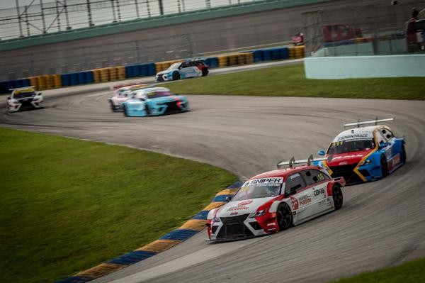 Debaixo de chuva forte no final da primeira corrida da Sprint Race Brasil que aconteceu neste domingo, 30 de junho, em Homestead, Eduardo Barrichello dá um espetáculo de pilotagem e conquista sua primeira vitória em estreia na categoria. Na chegada ao box comemorou muito o resultado com o pai Rubinho Barrichello, que largará da pole position na segunda corrida marcada para as 16h30.
