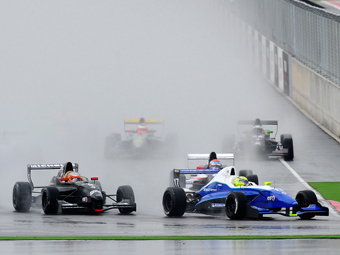 O brasileiro André Negrão foi a grande sensação da prova de abertura da Eurocup F-Renault 2.0, hoje (sábado, 17), no Motorland Aragón, circuito espanhol que recebe a rodada de abertura da World Series by Renault, série que reúne várias categorias baseadas em modelos e motores da marca francesa. O piloto campineiro largou na pole position e liderou dois terços das 12 voltas da competição disputada sob chuva, até ser abalroado pelo francês Arthur Pic quando ambos chegavam ao final da reta e se preparavam para completar a oitava volta da prova vencida pelo norte-americano Kevin Korjus. O piloto francês cruzou a linha de chegada em primeiro, mas foi punido com 25 segundos por atitude anti-desportiva e ficou classificado em quinto lugar. A segunda prova da rodada será disputada amanhã, Á s 9 horas (horário de BrasÁlia), e novamente Negrão e Pic dividirão a primeira fila do grid.