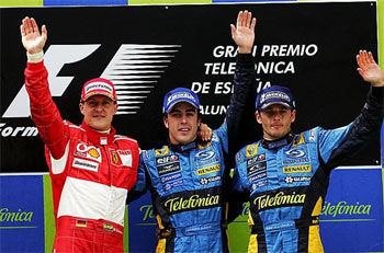 O espanhol Fernando Alonso, da Renault, venceu neste domingo (14/05) o GP da Espanha, em Barcelona, levando o público que lotou o autódromo a loucura. 131 mil espectadores foram ao circuito catalão. Ele liderou com tranqüilidade, não dando chances ao alemão Michael Schumacher, da Ferrari, que foi o 2º. O italiano Giancarlo Fisichella, companheiro de Alonso, fechou o pódio.