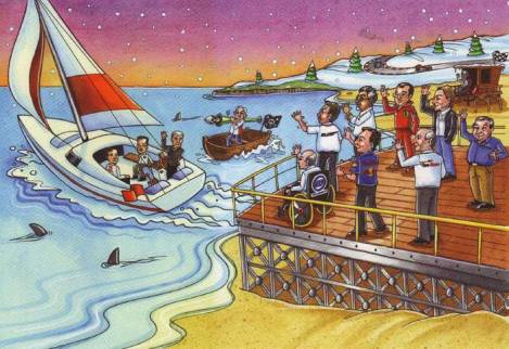 Na imagem ao lado pode-se observar um barco em que Max Mosley, ex-presidente da FIA, John Howett, ex-chefe da Toyota, e Mario Theissen, da BMW, duas equipes que deixaram a categoria neste ano, despedem-se dos demais times.