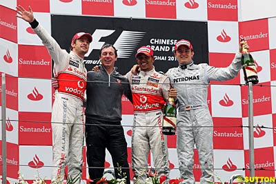 O inglês Jenson Button (McLaren) venceu neste domingo (18/04), o GP da China, em Xangai, 4ª etapa da temporada. Foi a segunda vitória do atual campeão no ano. Seu parceiro de equipe e compatriota Lewis Hamilton completou a dobradinha da equipe. O alemão Nico Rosberg (Mercedes) foi o 3º.