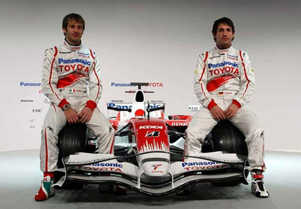 O italiano Jarno Trulli e o alemão Timo Glock serão os pilotos da Toyota em 2008. Eles começarão os testes com o modelo TF108 no próximo domingo, no circuito de Jerez de la Frontera, na Espanha.