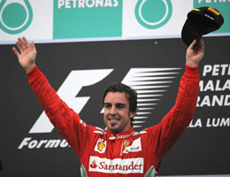 O espanhol Fernando Alonso(Ferrari) venceu neste domingo (25/03), o GP da Malásia, em Sepang, 2ª etapa da temporada. Foi a 28ª vitória de Alonso na categoria. O mexicano Sergio Perez (Sauber) e o britânico Lewis Hamilton (McLaren) completaram o pódio.