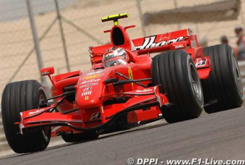 A Ferrari com Kimi Raikkonen e Felipe Massa fez o melhor tempo no primeiro treino livre para o GP do Bahrain. Os pilotos da McLaren vieram logo a seguir com Lewis Hamilton Á frente do espanhol e atual bi-campeão, Fernando Alonso. Rubens Barrichello, da Honda, foi apenas o 17º, ficando seis posições atrás de Jenson Button.