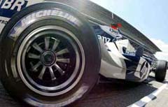 Fernando Alonso, da Renault, corre com pneus Michelin, enquanto Michael Schumacher, da Ferrari, utiliza pneus Bridgestone.