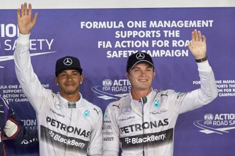 LÁder do campeonato, o alemão Nico Rosberg foi apenas 0s007 mais lento, e completa a dobradinha da Mercedes. A Red Bull, com o australiano Daniel Ricciardo e o alemão Sebastian Vettel, formam a segunda fila.