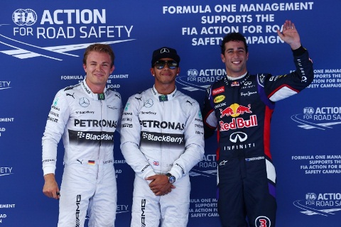 Surpresa dos treinos, o francês Romain Grosjean (Lotus) alinha em quinto, seguido pelo finlandês Kimi Raikkonen. Dois campeões mundiais formam a quarta fila: O espanhol Fernando Alonso (Ferrari) e o britânico Jenson Button (McLaren).