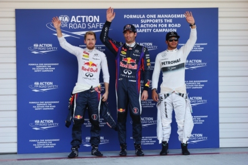 O brasileiro Felipe Massa (Ferrari) divide a terceira fila com o alemão Nico Rosberg (Mercedes). O alemão Nico Hulkenberg (Sauber) e o espanhol Fernando Alosno (Ferrari), único que ainda pode impedir o tetra de Vettel, formam a quarta fila.