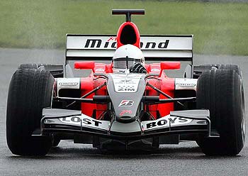 O italiano Max Biaggi realizou nesta quarta-feira o seu segundo teste na Fórmula 1. O ex-piloto de MotoGP andou com um carro da Midland na pista molhada do circuito de Silverstone, na Inglaterra.