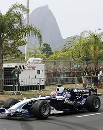 O piloto japonês Kazuki Nakajima pilotou um carro de Fórmula 1 pelas ruas do Aterro do Flamengo, no Rio de Janeiro, em uma exibição da escuderia Williams nas vésperas do Grande Prêmio do Brasil.