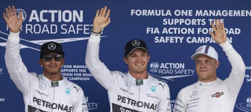 LÁder do campeonato, o britânico Lewis Hamilton completa a dobradinha da Mercedes. A dupla da Williams, o finlandês Valtteri Bottas e o brasileiro Felipe Massa dividem a segunda fila.