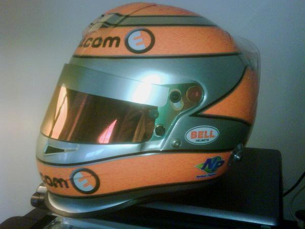 Nelsinho Piquet divulgou através do Twitter as novas cores do seu capacete, prata e laranja.