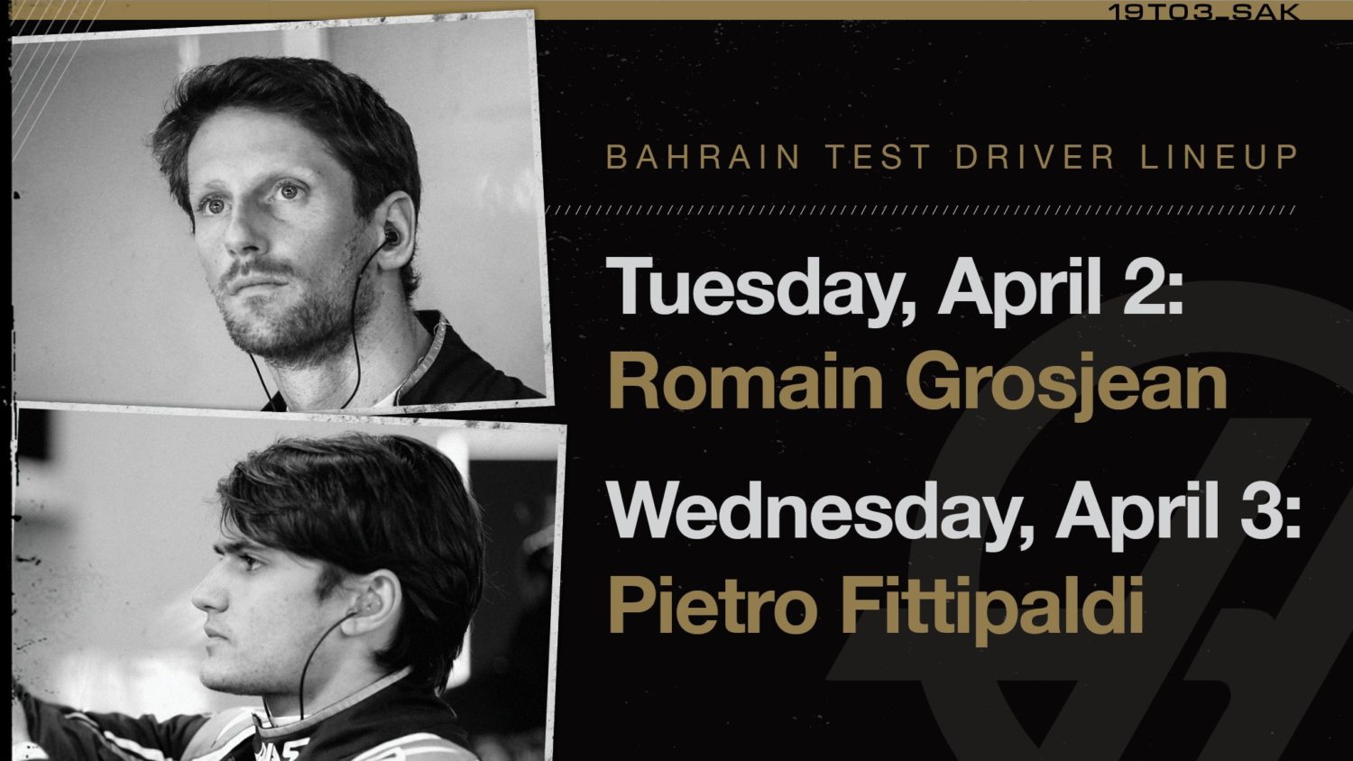 Os testes começam na terça-feira, mas, neste dia, a Haas optou por mandar o piloto titular Romain Grosjean Á pista de Sakhir.