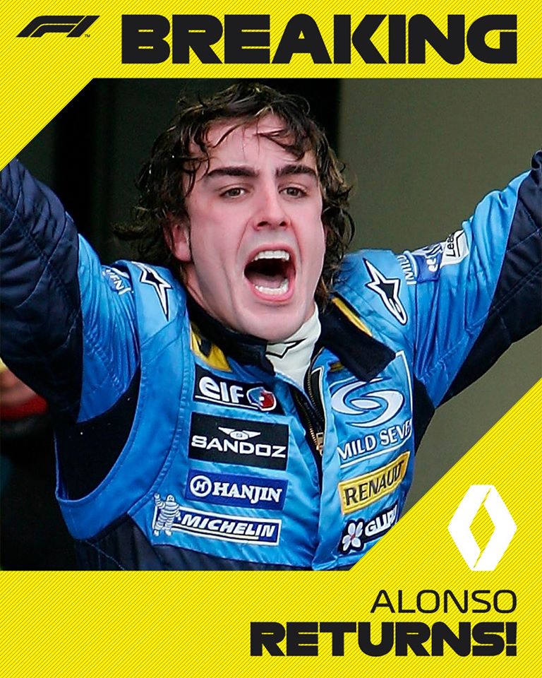 A equipe Renault confirmou o retorno do espanhol Fernando Alonso, na próxima temporada. O bicampeão Mundial está afastado da categoria desde 2018. Passando neste perÁodo pelo WEC, Indy500 e Rally Dakar.
