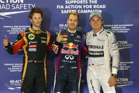 O alemão Nico Rosberg (Mercedes) completa a primeira fila. O francês Romain Grosjean (Lotus) divide a segunda fila com o australiano Mark Webber (Red Bull). O britânico Lewis Hamilton (Mercedes) alinha em quinto, seguido pelo brasileiro Felipe Massa (Ferrari).