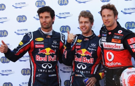 O britânico Jenson Button (McLaren) completa a primeira fila. O australiano Mark Webber (Red Bull) abre a segunda fila, seguido pelo espanhol Fernando Alonso (Ferrari). O alemão Michael Schumacher (Mercedes) sai em 5º com o brasileiro Felipe Massa (Ferrari) na 6ª posição.
