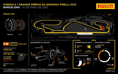 A Fórmula 1 volta Á Barcelona, que recebeu dois dos testes pré-temporada de 2015. Mas, desta vez, o clima será bem mais quente, aumentando ainda mais a demanda sobre os pneus. Com curvas de alta e o asfalto mais abrasivo do ano, o P Zero Laranja duro e o P Zero Branco médio formam a escolha ideal para o GP da Espanha, onde a GP 2 e a GP3 também competem com pneus Pirelli.