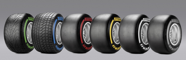 Dos 30 conjuntos Á disposição para cada equipe, 22 conjuntos de quatro pneus slick (duro, ‘inverno’, duro, médio e macio) são selecionados pela Pirelli em concordância com as equipes. Os restantes oito conjuntos são escolhidos pelas equipes com antecedência, de acordo com os seus planos de execução individuais.