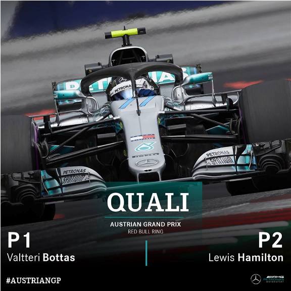 O finlandês Valtteri Bottas (Mercedes) conquistou a pole-position para o GP da Áustria, no Red Bull Ring, nona etapa da temporada. Foi a primeira pole de Bottas no ano, e quinta na categoria. Na Q3 o finlandês marcou o tempo de 1m03s130.