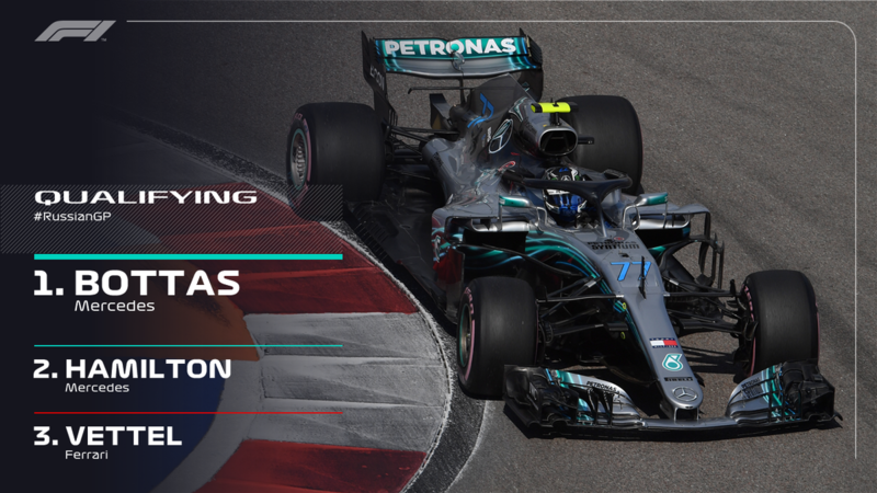 O finlandês Valtteri Botas (Mercedes) marcou a pole-position para o GP da Rússia, no Circuito de Sochi, 16ª etapa da temporada. Foi a segunda pole de Bottas no ano, e sexta na categoria. Na Q3 Bottas fez o tempo de 1m31s387, novo recorde da pista.