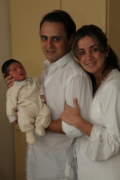 Felipe e Raffaela Massa posam com o bebê na maternidade.
