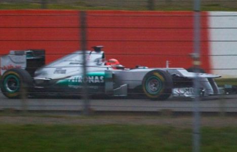 Depois de usar o carro do ano passado nos testes de Jerez de la Frontera, a Mercedes já trabalha com o novo modelo. Os alemães Nico Rosberg e Michael Schumacher entraram em ação na pista de Silverstone e uma imagem do bólido foi registrada na última quinta-feira.