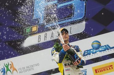 Enquanto isso Matheus Iorio, que saiu em sexto, tentava passar o companheiro de equipe Christian Hahn, também escoltado por Guilherme Samaia. “O safety car do inÁcio da corrida foi o que mais me complicou. A gente tinha alguma vantagem, e como fui rápido no warm-up, sabia bem as condições da pista. Quanto mais secasse, mais as coisas ficariam igualadas. Todo mundo ia saber como virar rápido. Por isso, as primeiras voltas eram a minha chance de ir ganhando posições. Tive que remar bastante para passar o Hahn, porque ele estava se defendendo muito bem. Depois disso, deu tudo certo”, disse o lÁder da disputa.