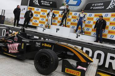 Renan Guerra venceu a segunda bateria da Fórmula 3 Brasil em Interlagos. Substituindo o contundido Raphael Raucci na RR Racing, o piloto do carro #77 largou na quarta posição e assumiu a liderança apenas na 15a volta, para conquistar sua primeira vitória na categoria.
