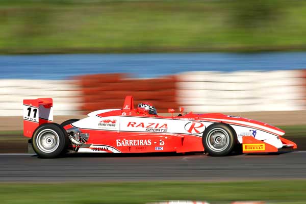 LÁder do torneio com 81 pontos, o baiano Razia estabeleceu a melhor volta em 1:29.69. Ele era um dos centros das atenções justamente por duelar com os paulistas Mário Moraes (equipe Bassan Motorsports) e Diego Nunes (Bassani Racing), seus rivais na briga pelo tÁtulo. Diego ficou com o segundo tempo do dia, com 1:30.14, mas não ficou satisfeito: “Não sei se foi por causa dessa borracha, que tornou o traçado muito diferente do que ele costuma ser em termos de aderência, mas nosso carro não funcionou como querÁamosâ€, comentou o piloto de 19 anos, que soma 72 pontos na tabela. “Vamos levar nosso Dallara/Berta para a oficina e desmontá-lo inteiro. Vamos descobrir se há algum problema, pois já viramos aqui 1:29.50 e não conseguimos repetir essa marca hojeâ€, completa Ruben Borges, engenheiro da equipe Bassani Racing.