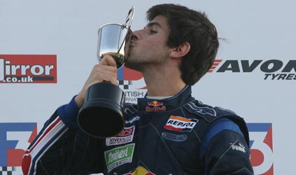 O espanhol Jaime Alguersuari, da Carlin, é o campeão da temporada 2008 da F-3 Inglesa. O piloto, de 18 anos, conquistou a taça no último final de semana, com duas vitórias em Donington, na Inglaterra.