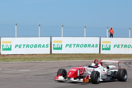A corrida deste domingo seguiu a tÁ´nica de todo o fim de semana na cidade gaúcha. Mesmo com Bruno Bonifácio saindo na pole-position, logo Fabiano Machado e Guilherme Silva assumiram as duas primeiras posições e deram inÁcio ao duelo entre as equipes Cesário Fórmula e Hitech Racing. Mais rápido, Guilherme dava a impressão de esperar o momento certo para atacar o lÁder, mas acabou tendo sua estratégia prejudicada por um piloto retardatário.