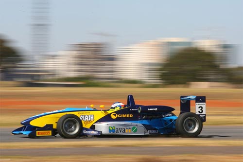 A Fórmula 3 Sul-americana teve sua programação do fim de semana aberta nesta sexta-feira (08) no Autódromo Nelson Piquet, em BrasÁlia, Distrito Federal. A pole position da 7ª etapa, que vai ser disputada neste sábado (09) foi conquistada pelo piloto brasiliense Felipe Guimarães. Denis Navarro (Navarro Distribuidora/CIMED/Flash Power) da equipe Bassani Racing não pode aproveitar seu segundo jogo de pneus zero na tomada de tempos, e vai abrir a 4ª fila na prova, largando na 7ª colocação. “Virei meu tempo no primeiro jogo de pneus. Na minha segunda tentativa, onde ia melhorar minha melhor volta, um carro da Razia Sports estava saindo muito lento dos boxes e me atrapalhou. Além de não melhorar meu tempo, perdi o melhor momento do pneu zeroâ€, explicou Navarro.