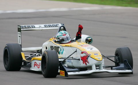A chuva, que era prevista para cair neste sábado, não veio, e Fernando Galera conquistou sua primeira vitória na Fórmula 3 Sul-Americana na tarde deste sábado no Autódromo Internacional de Santa Cruz do Sul (RS). O piloto da PropCar completou as 25 voltas da 13a etapa em 31min02s838, com média de 170,546km/h. A vitória, no entanto, não veio com facilidade: a vantagem para Felipe Guimarães, segundo colocado, ao cruzar a linha de chegada, foi de apenas 0s628.