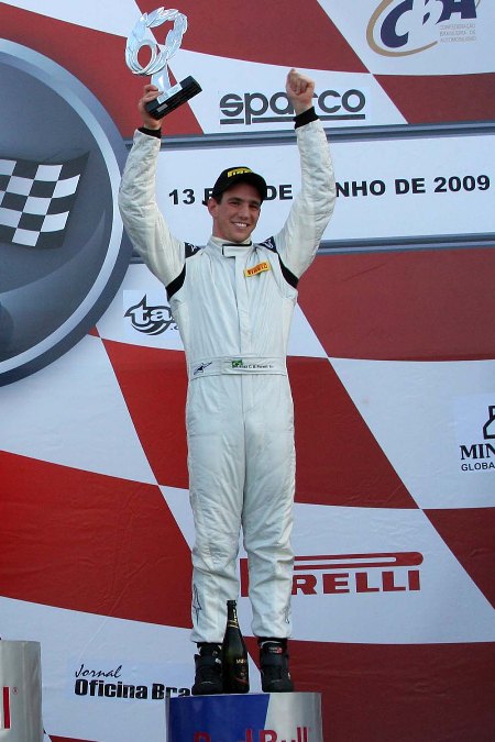 “Foi uma corrida onde tÁnhamos a possibilidade de terminar, no mÁnimo, na segunda posição. Mas, para não bater com o Boesel e o Galera, tive que parar o carro. Com isso o Souza me passou e aÁ não consegui mais recuperar a segunda posição. Estou muito feliz por ter chagado ao pódio em meu segundo final de semana de corridas e espero, na prova de amanhã, ter condição de quem sabe brigar pela minha primeira vitóriaâ€, finalizou o piloto de 17 anos.