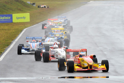 Com chuva, foi realizado neste sábado (11 de outubro), em Santa Cruz do Sul, Rio Grande do Sul, a 13ª etapa do Campeonato Sul-americano de Fórmula 3. Nelson Merlo da equipe RC3 Bassani, lÁder do campeonato, largou na pole position e venceu a corrida de ponta a ponta sem maiores dificuldades. Com a vitória, o piloto da Itaipava Racing Team, venceu sua sexta corrida consecutiva, a sétima na temporada. “Foi uma prova difÁcil. Por conta da chuva tive que redobrar a atenção. A pista estava muito escorregadia e traiçoeira. Mas o carro estava muito equilibrado e conseguimos mais esta vitória importante no campeonatoâ€, disse o lÁder da competição que soma 96 pontos.