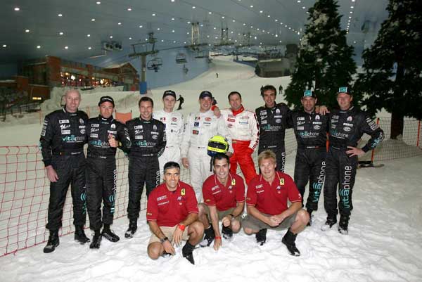 À véspera de iniciarem a corrida de temperaturas mais altas do ano, os pilotos do Mundial experimentaram ares amenos nesta quinta-feira (16). Melo e outros 11 competidores visitaram o Ski Dubai, uma estação de esqui indoor com neve artificial, construÁda em meio ao deserto. “O local é fantástico, reproduziram com perfeição os detalhes de uma estação de esqui natural. É como se você estivesse numa montanha, esquiando, mesmoâ€, depÁ´s o brasileiro.