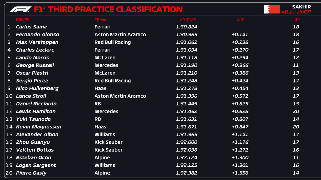 Fórmula-1: Carlos Sainz é o mais rápido no terceiro treino livre