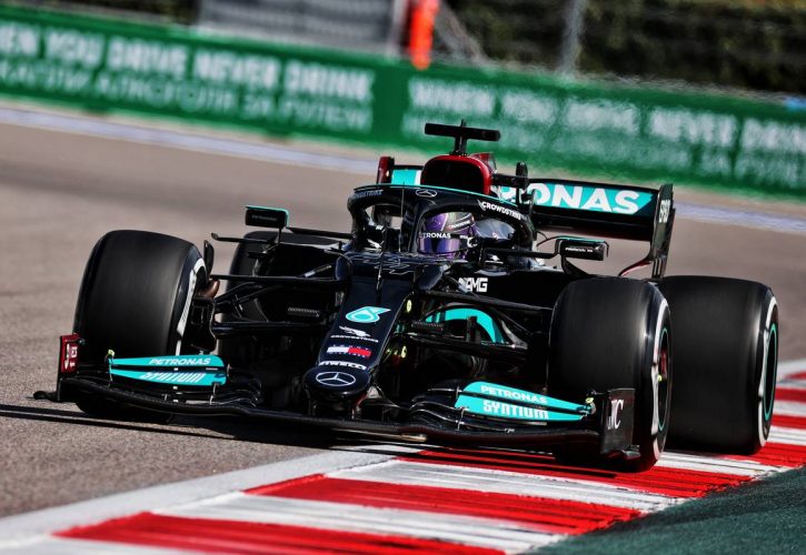 Pole-position o britânico Lando Norris (McLaren) liderava a prova, com Hamilton cerca de um segundo atrás, quando começou a chover em Sochi, faltando sete voltas para o final. Com a chuva aumentando, Hamilton foi para os boxes na 50ª volta, colocar pneus de chuva, com Norris permanecendo na pista.