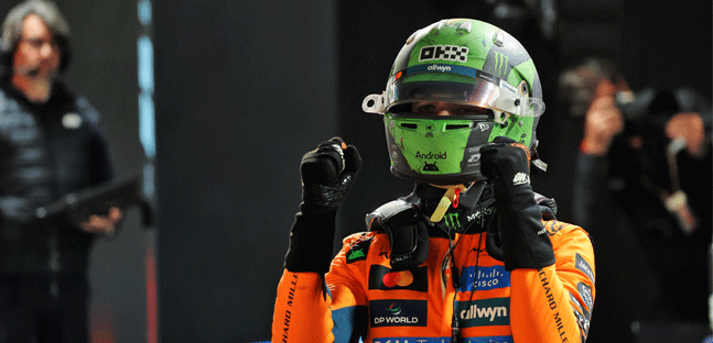 Líder do campeonato o britânico Lando Norris (McLaren) conquistou a pole-position para o GP de Las Vegas, nos EUA, 22ª etapa da temporada. Foi a sua sétima pole no não, e 16 na categoria. Com chuva Norris marcou 1m47s934 no Q3.