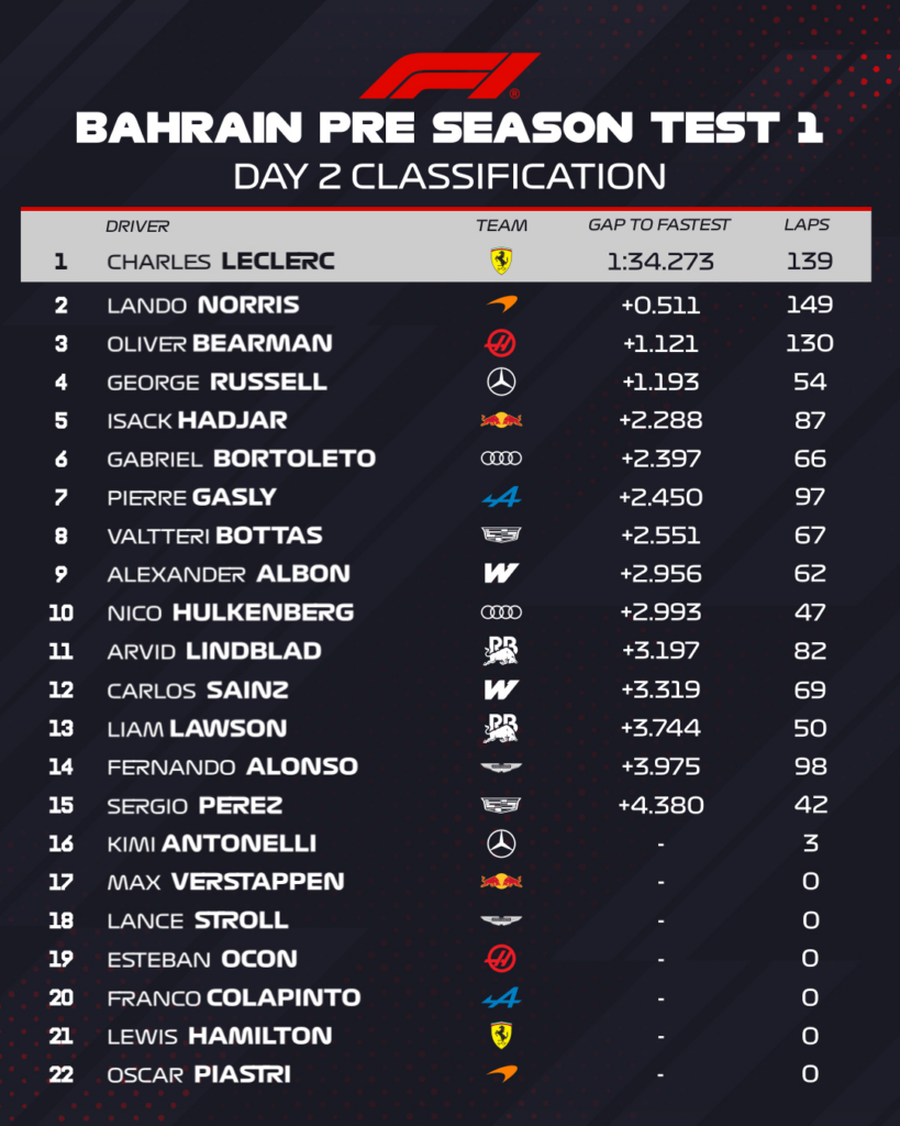 Fórmula-1: Confira os tempos do segundo dia de testes coletivos no Bahrain