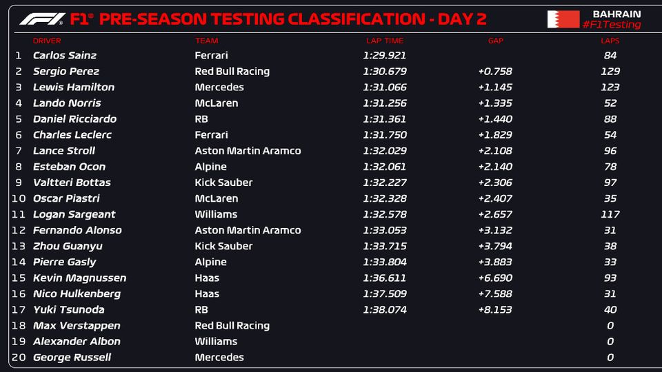 Fórmula-1: Confira os tempos do segundo dia de testes