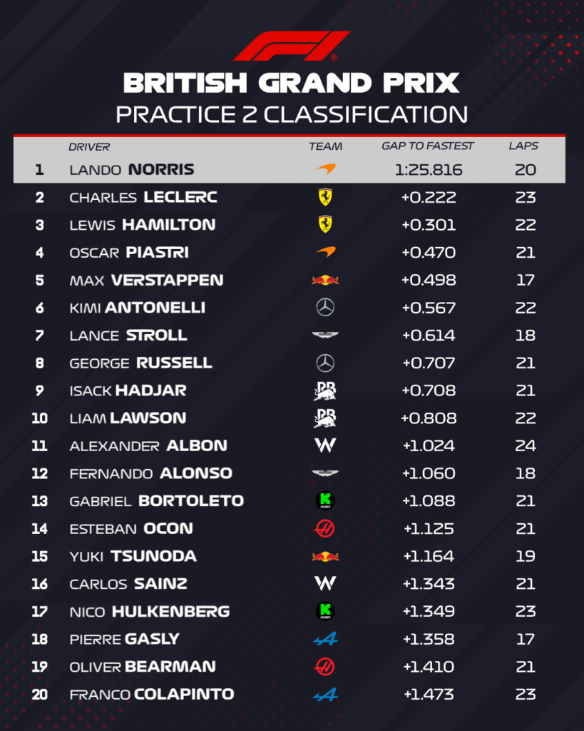 Fórmula-1: Confira os tempos dos treinos livres para o GP da Grã-Bretanha